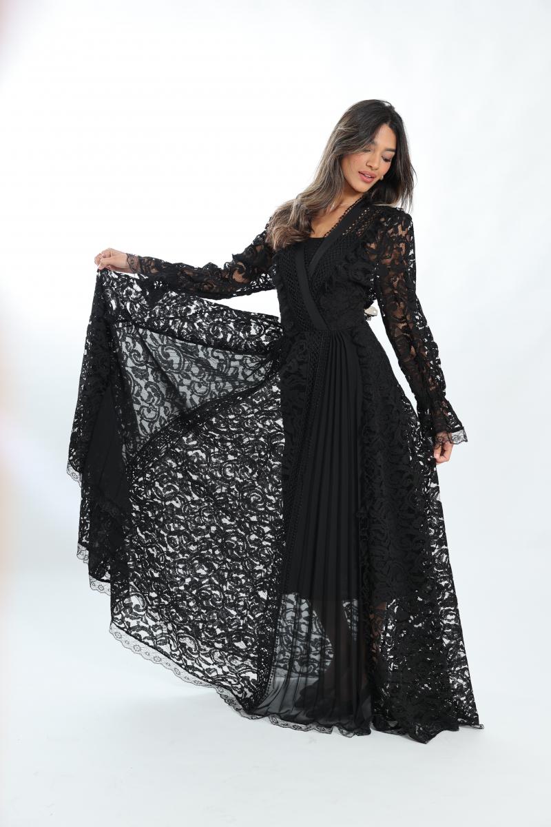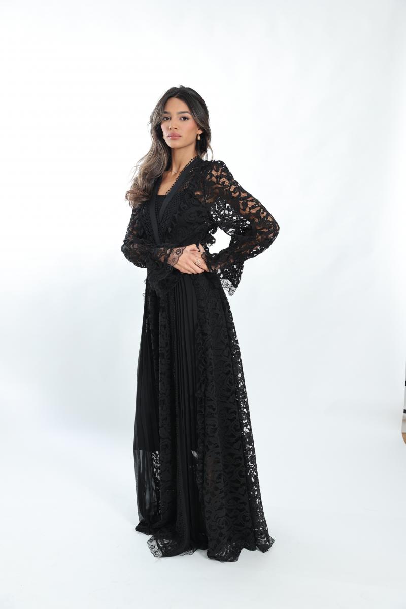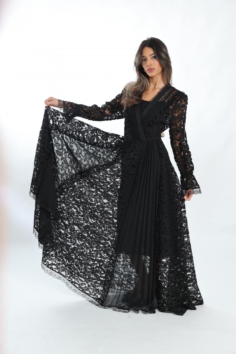 שמלת מקסי פליסה בשילוב תחרה מותן מודגש פלאסס